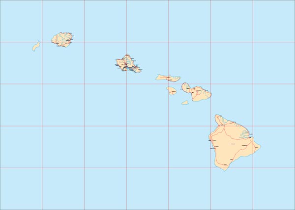 Detail view of EPS Vector Map of Hawaii - the land fill color is switched on.