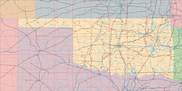 ![]() Detail view of EPS Vector Map of Oklahoma - the land fill color is switched on. The EPS Vector map for Oklahoma has 25 layers which may be individually modified or removed. Select the Vector only EPS map of Oklahomaa option to download this style map. |