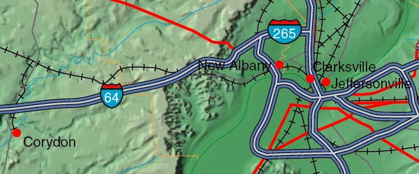 Contrast of the relief map layer may be dimmed by adjusting the opacity - for Indiana is set to 80%.