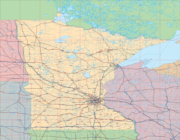 Detail view of EPS Vector Map of Minnesota - the land fill color is switched on.