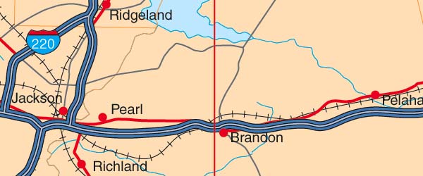 ![]() Detail view of EPS Vector Map of Mississippi - the land fill color is switched on. The EPS Vector map for Mississippi has 24 layers which may be individually modified or removed. Select the Vector only EPS map of Mississippi option to download this style map. |