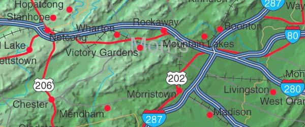 ![]() Detail View of the Cartographic style relief rendering when placed under the Vector EPS map. Any of the 5 relief styles may be used as alternative background textures to customize this map. Contrast of the relief map layer may be dimmed by adjusting the opacity - for New Jersey is set to 90%. Select the Relief & EPS Map Package of New Jersey option to download this style map collection. |