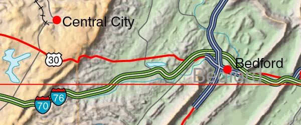 ![]() Detail View of the Cartographic style relief rendering when placed under the Vector EPS map. Any of the 5 relief styles may be used as alternative background textures to customize this map. Contrast of the relief map layer may be dimmed by adjusting the opacity - for Pennsylvania is set to 70%. Select the Relief & EPS Map Package of Pennsylvania option to download this style map collection. |