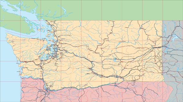 ![]() Detail view of EPS Vector Map of Washington - the land fill color is switched on. The EPS Vector map for Washington has 24 layers which may be individually modified or removed. Select the Vector only EPS map of Washington option to download this style map. |