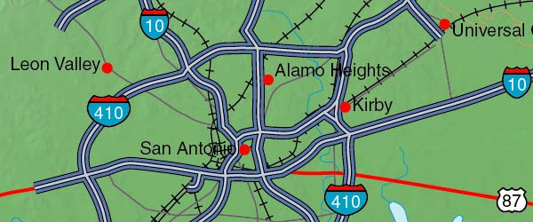 Detail view of EPS Vector Map of East Texas - the land fill color is switched on.