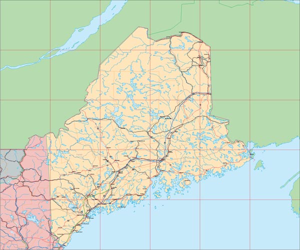 Detail view of EPS Vector Map of Maine - the land fill color is switched on.