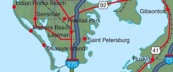 ![]() Detail view of EPS Vector Map of Florida - the land fill color is switched on. The EPS Vector map for Florida has 24 or more layers which may be individually modified or removed. Select the Vector only EPS map of Florida option to download this style map. |