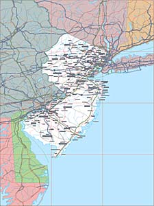 | Map identification: | New Jersey | Projection system: | Geographic / Plate Carree |